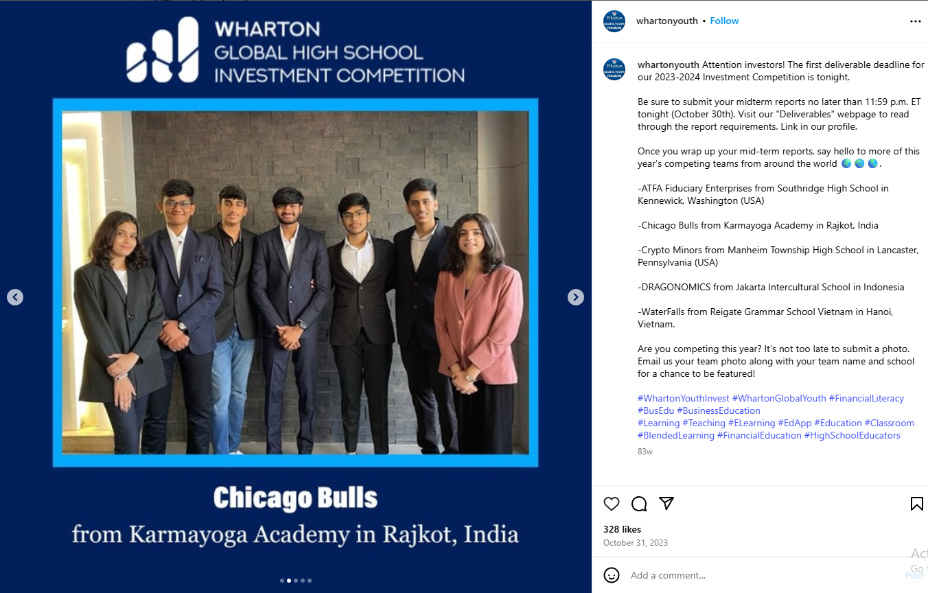 Wharton Stock Track, or the Wharton Investment Simulator (WInS), is a virtual stock market simulation used in the Wharton Global High School Investment Competition. It provides students with $100,000 in virtual cash to manage a portfolio using real-world market data. It helps students learn about investing, portfolio management, risk, and diversification in a hands-on, risk-free environment.